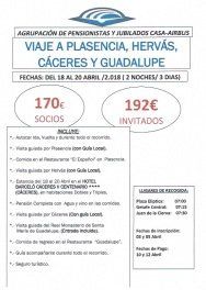 Continuamos viaje para llegar a Plasencia sobre las 11 h. donde estaba esperándonos el guía local, quién nos acompañó para realizar la visita al casco antíguo de la ciudad, visitando la Catedral, el Palacio de Carvajal, Monasterio de la Encarnación, Casa del Deán y otras cosas más que tiene Plasencia; a las 14,00 h. comida en el Restaurante Español en plena Plaza Mayor.