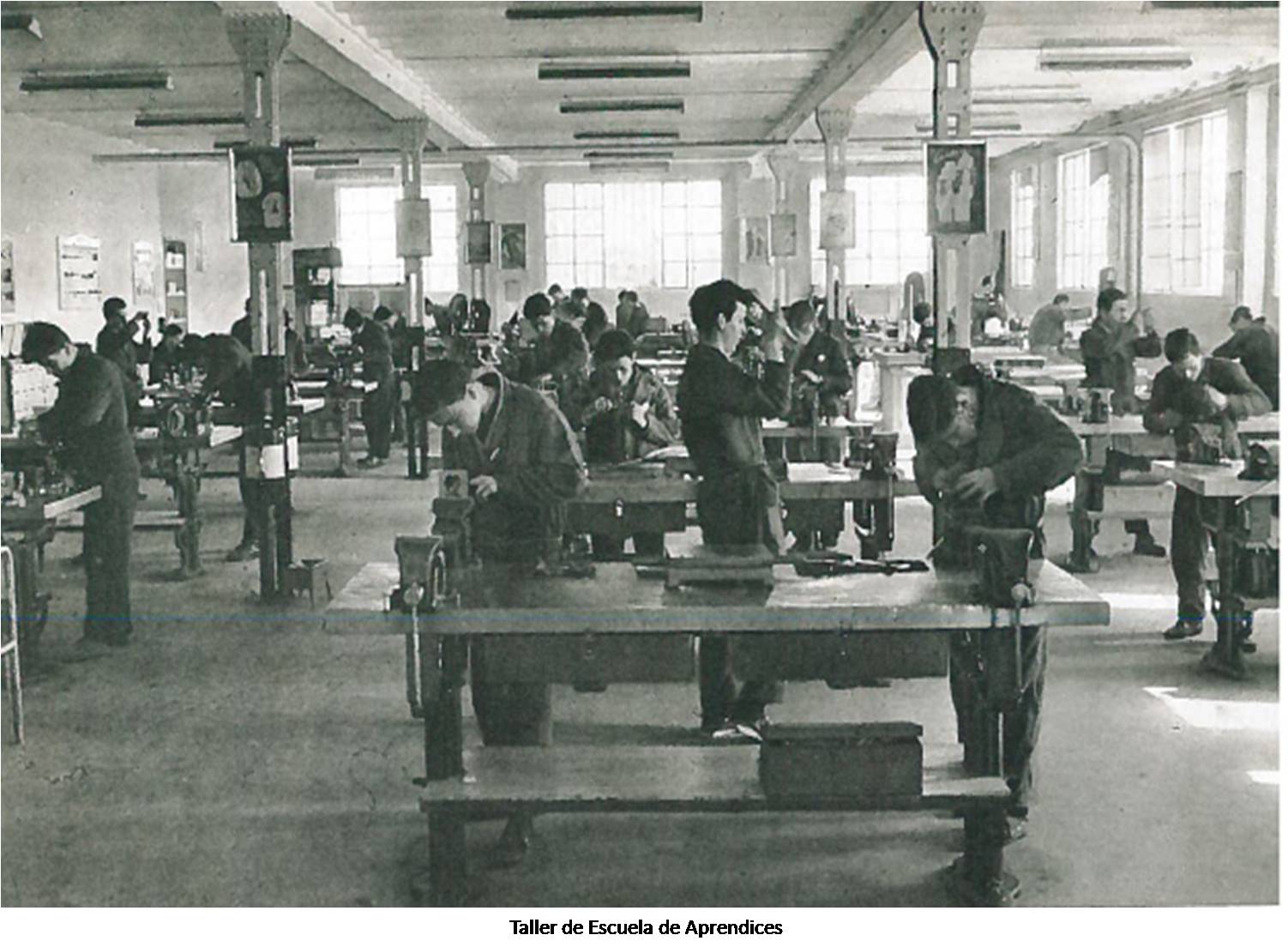 En el primer curso de aprendizaje todos debían pasar por los talleres de Ajuste y Chapistería, compaginando las enseñanzas prácticas con las teóricas.